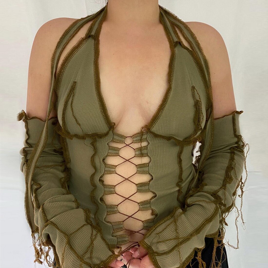 | Model Number | Backless Halter Ribbed Tie Front Top |