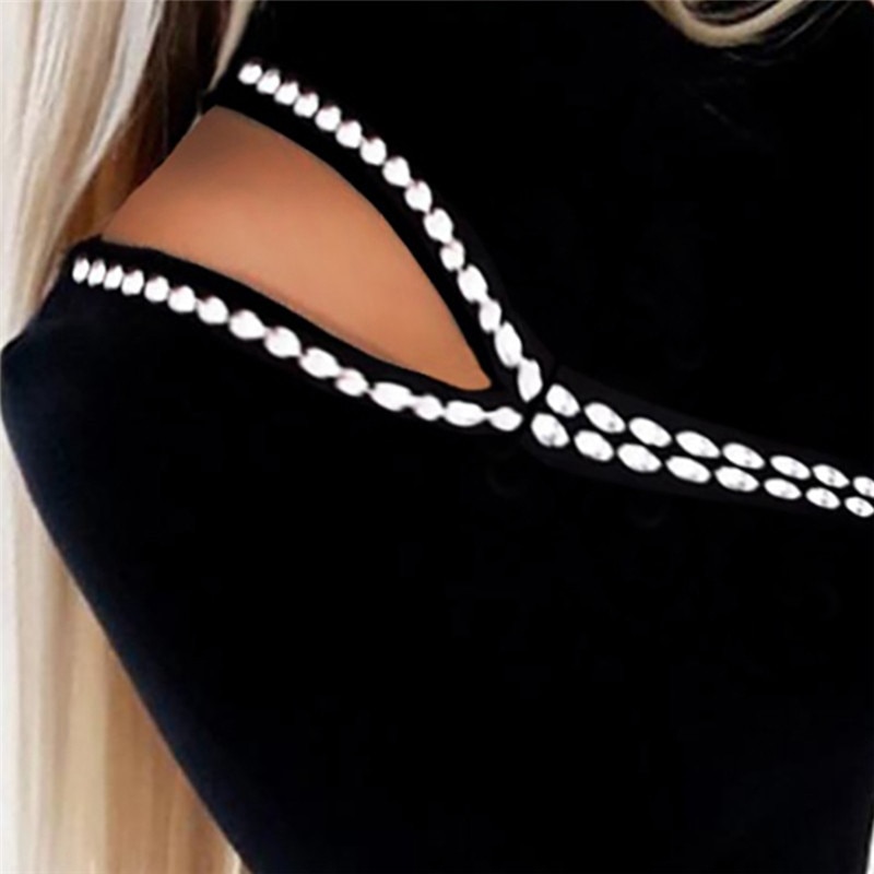 Women Sexy Hollow Out Slim Fit Long Sleeve Casual Turttle Neck Shirt Solid Black Tops Blouse Women Cold Shoulder Jumper Pullover