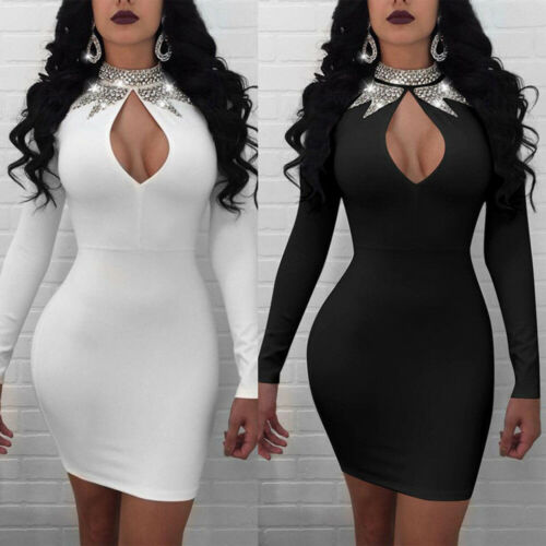 Sexy Women Crystal Bandage Bodycon Evening Party Club Wear Short Mini Dress