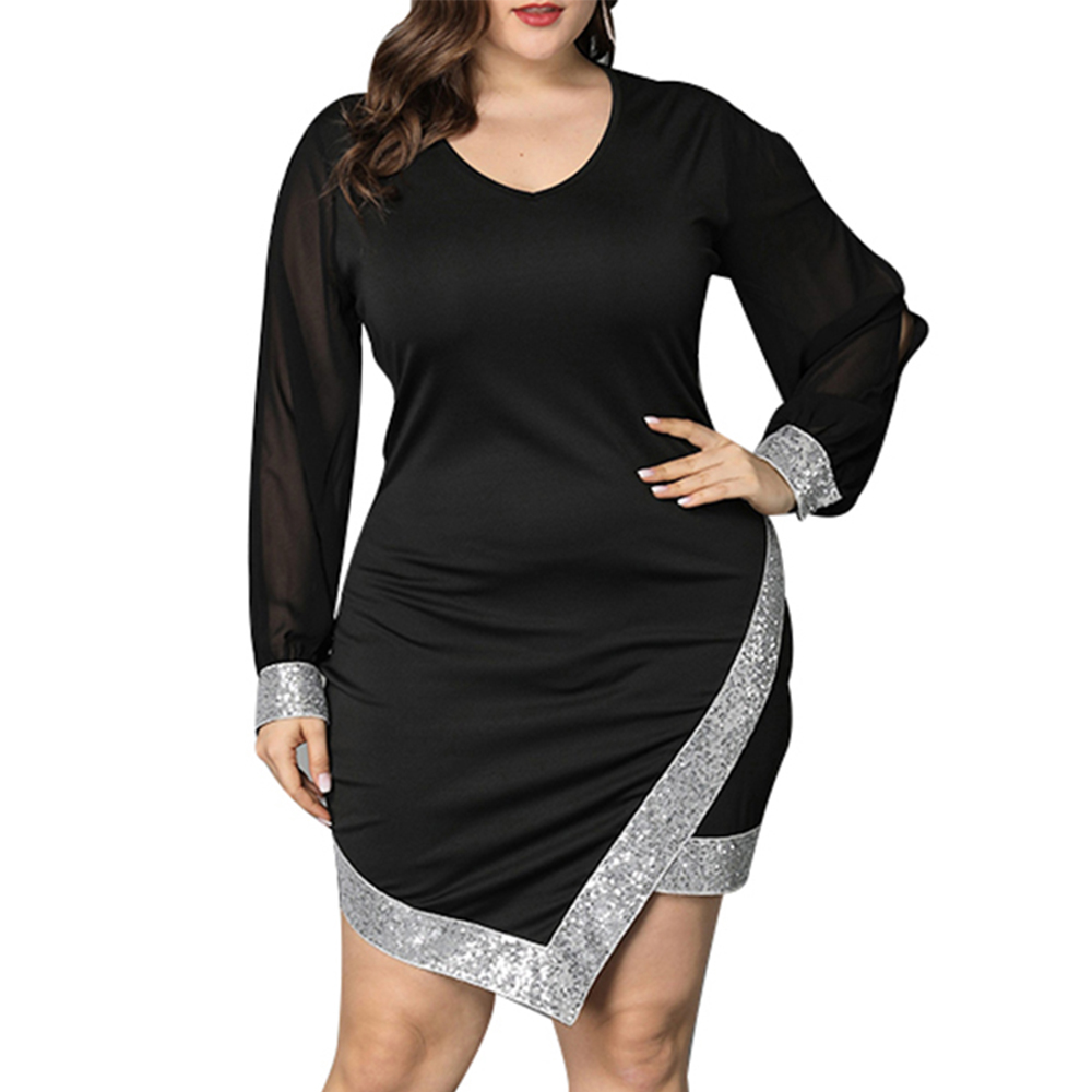 6XL Plus Size Elegant Dress For Women Chiffon Knee-Length Dress Ladies Sequins Patchwork Dress Summer Hollow Out Dress Vestidos