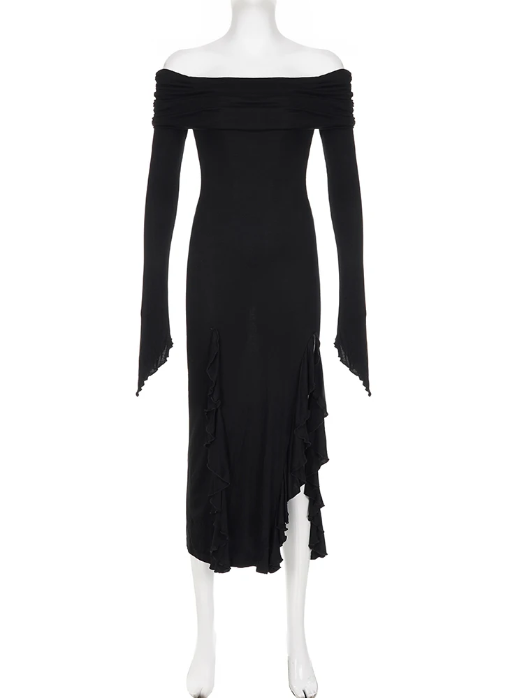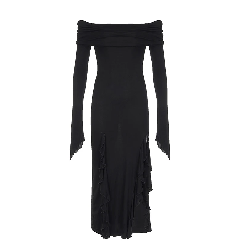 Gothic Elegant Dark Ruffles Split Long Dress