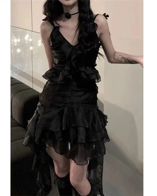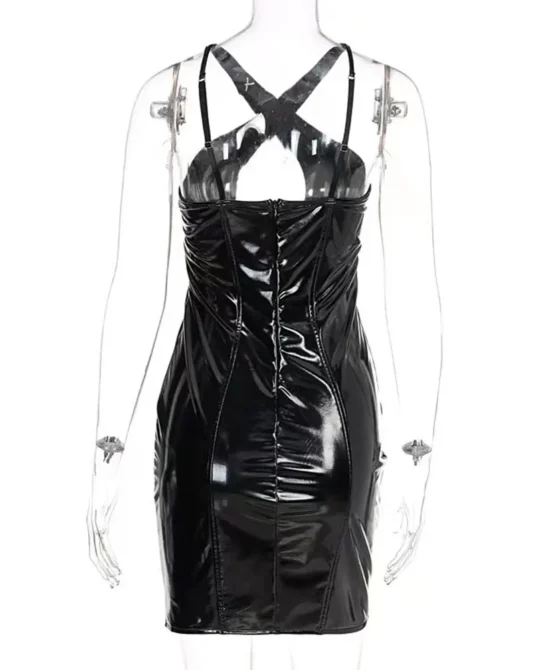 Be the first to review “Gothic Lace Up Neck PU Leather Club Halter Dress With Gloves”