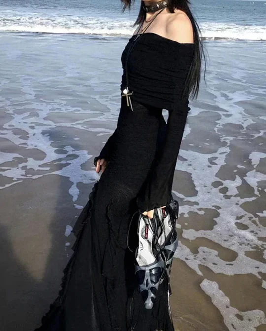 Be the first to review “Gothic Long Sleeve PVC Tight Dress”