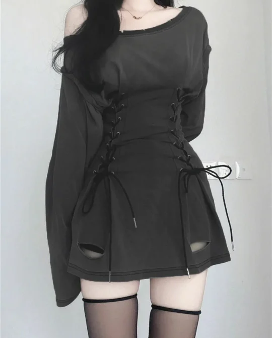 Be the first to review “Gothic Nightclub Irregular Strap Mesh Dress” Cancel reply