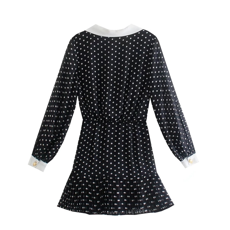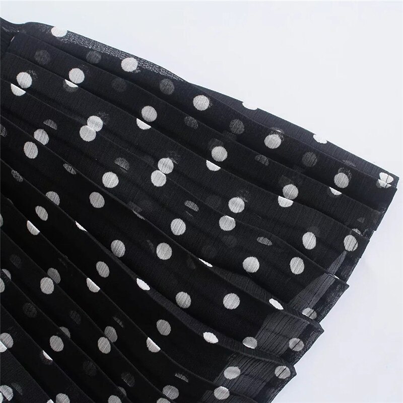 PSEEWE Za Black Polka Dot Dress Woman Tulle Mini Dress Women Pleated Chiffon Short Dresses Autumn Long Sleeve Elegant Dresses