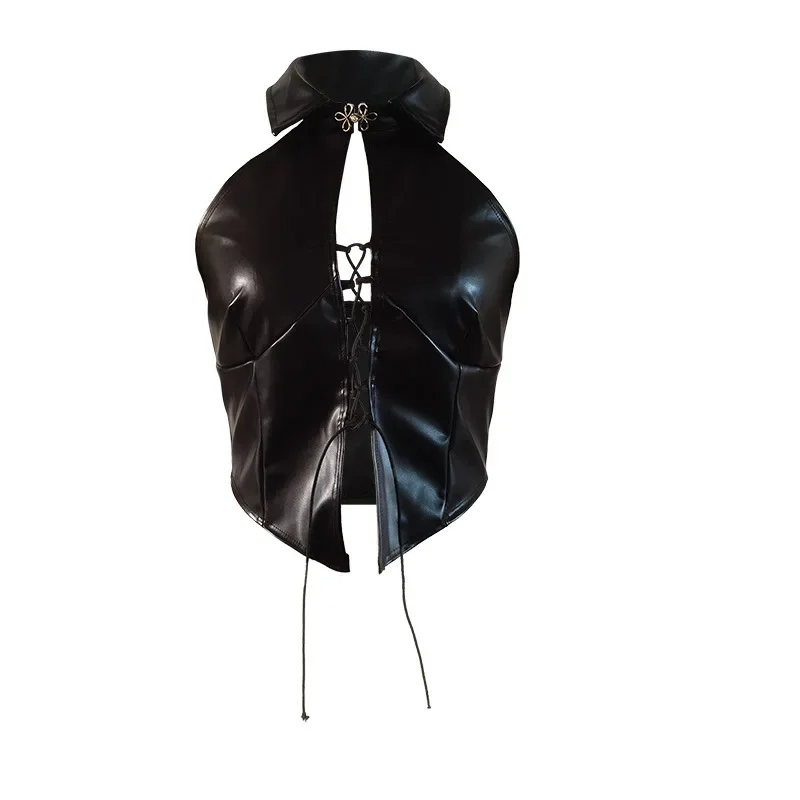 Be the first to review “Gothic PU Leather Bare Midriff Tank Top”
