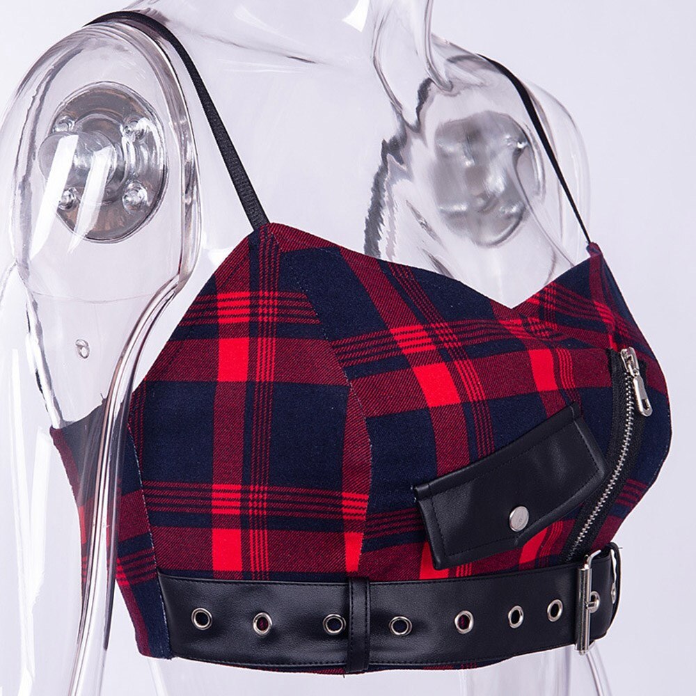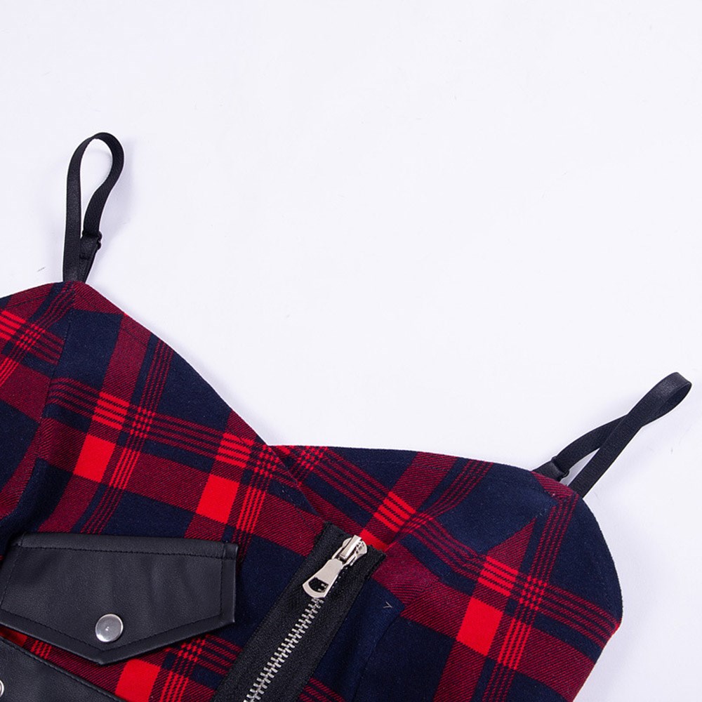Be the first to review “Gothic Red Plaid Zipper Crop Top”