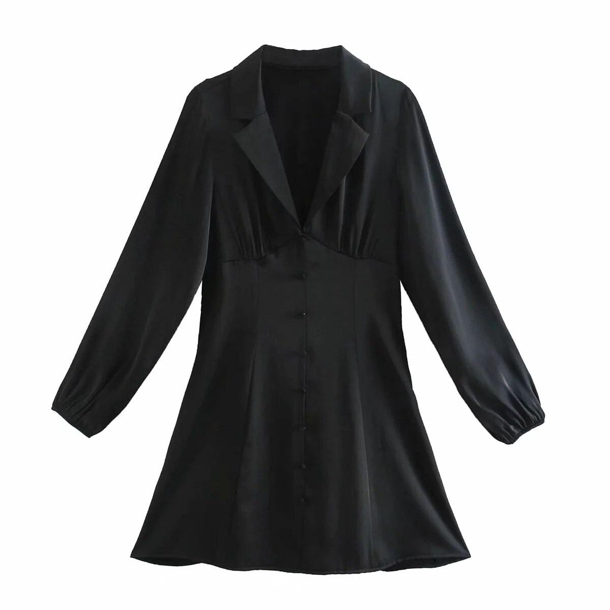 ZA New Women Retro Elegant Dress Office Casual Black Dresses Spring Autumn Slim A Line Mini Dress XITIMEAO