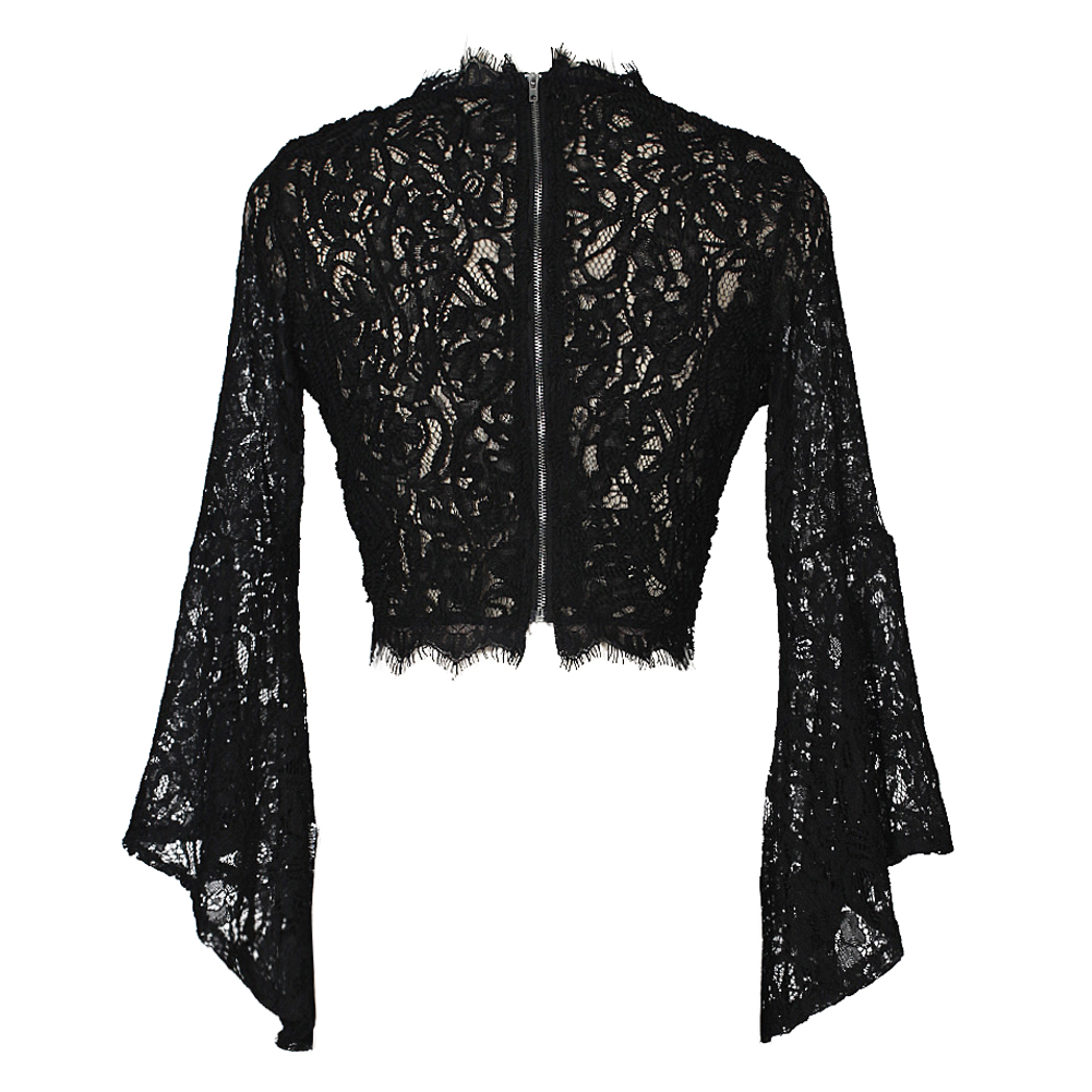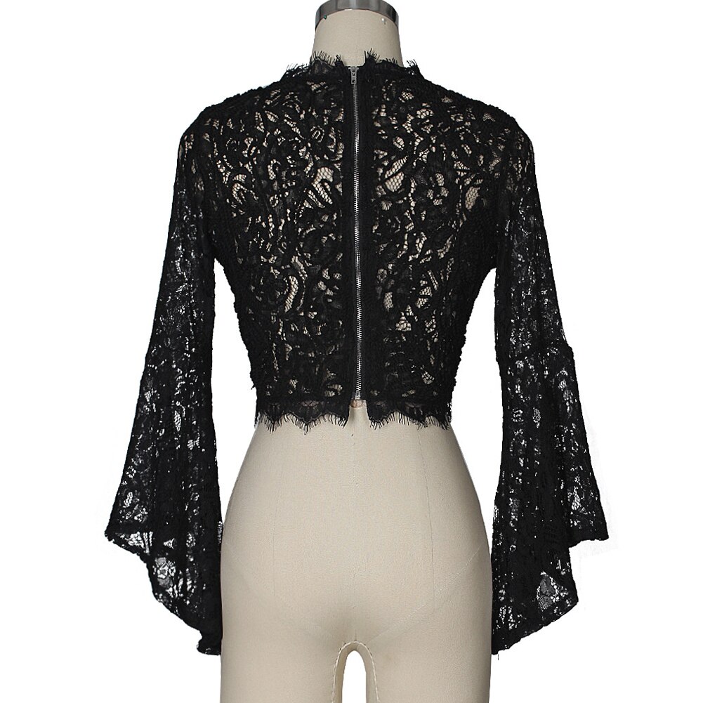 Crafted from a sheer crochet lace fabric.