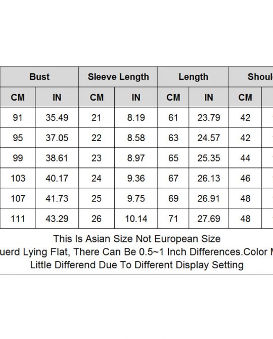 | Size | Length | Bust | Shoulder | Sleeve | – |