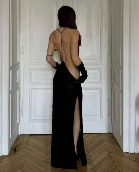 Be the first to review “Sexy Solid Midnight Hollow Club Halter Dress”