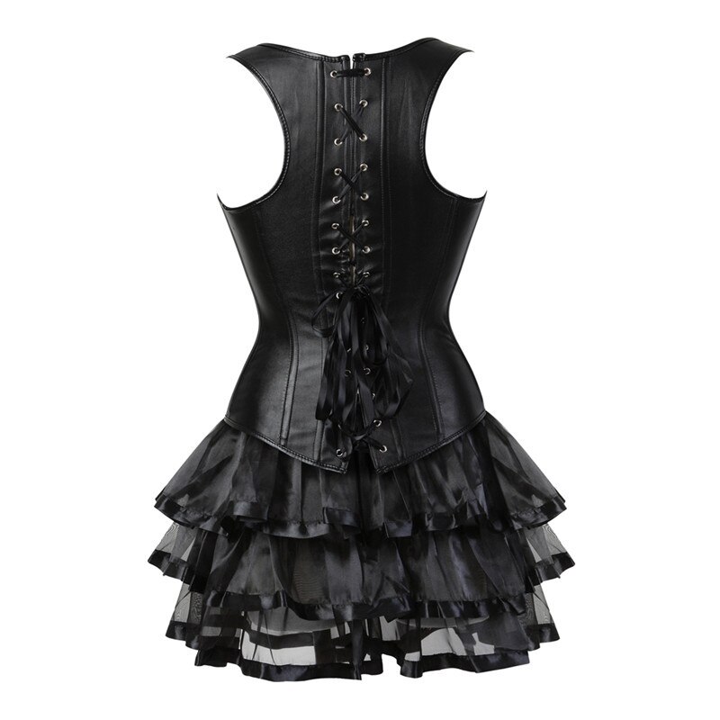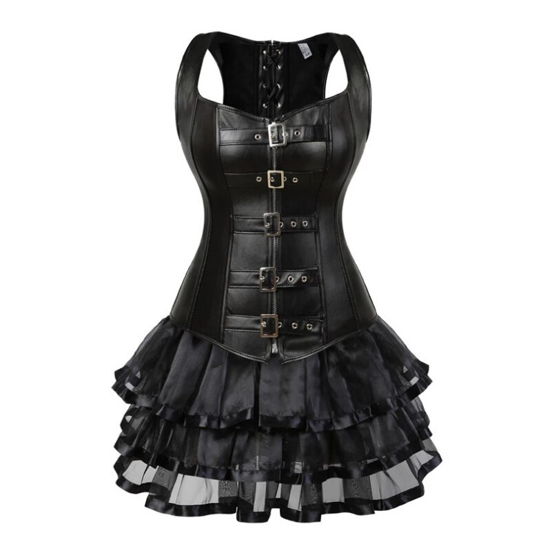 Steampunk Lace Up Back Waist Trainer Body Shaper Buckle Bustier Overbust Corset Dress Faux Leather Corsets Mini Skirt Tutu Plus