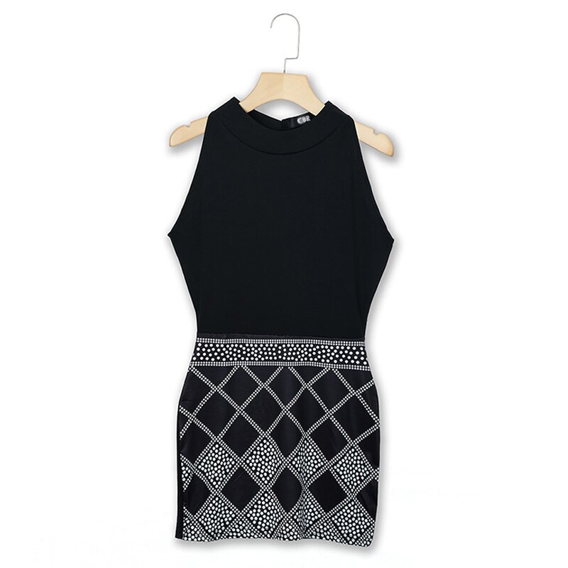 Women Summer Sleeveless Casual Short Dress Dots Print Bodycon Mini Dress Above Knee Slim Fit Sheath Dress